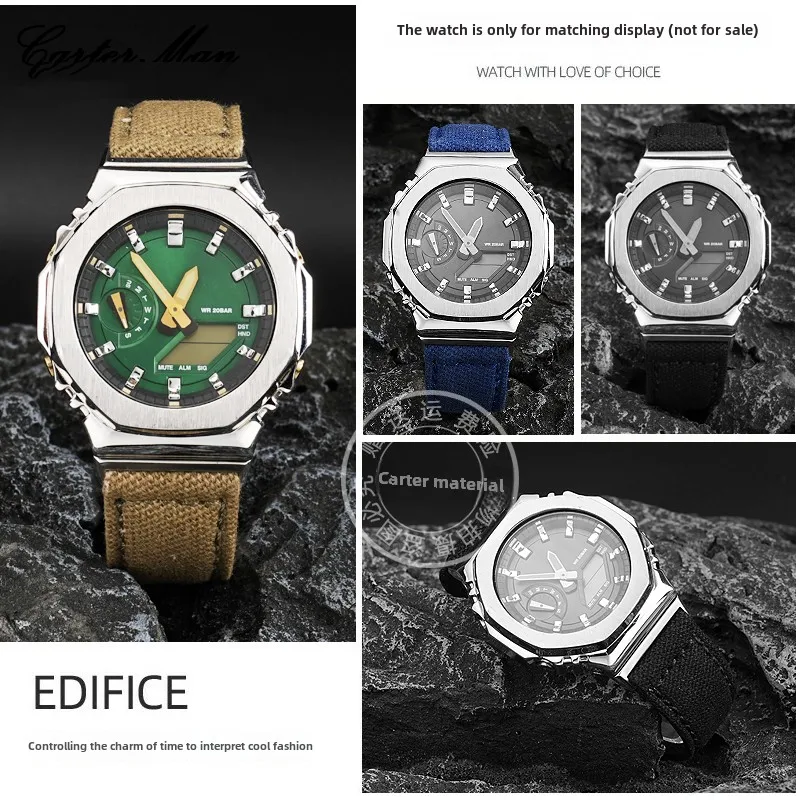 GA2100 GA2110 modified nylon watch Strap Case For Casio G-shock GA-2100 GA-2110 GM-2100 Canvas men’s green Watchband metal Bezel